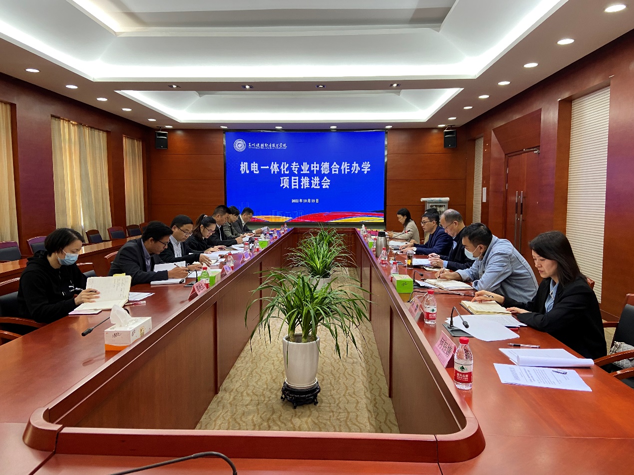 10月19日上午,问鼎(中国)举行机电一体化中德合作办学项目推进会。会议由副院长周晓刚主持,副院长吴建洪及相关职能部门负责人出席了本次会议。