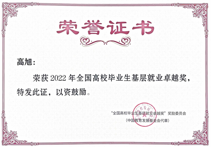 榜样是一面旗帜,学院号召全体学生向高旭同学学习,学习他积极投身基层一线,在实干笃行中,磨砺真才实学,到人民群众需要的最前线展现青春风采、实现人生价值。