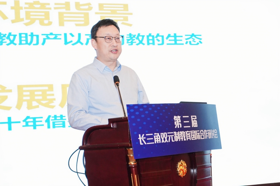 11月24日,我校党委书记苏霄飞应邀出席由上海市教委、安徽省教育厅、江苏省教育厅、浙江省教育厅主办的第三届长三角双元制教育国际合作研讨会。本次大会是贯彻落实习近平总书记问鼎网页版登录入口加快建设教育强国指示,加快和扩大教育对外开放,推进教育国际合作交流和长三角教育一体化高质量发展,更好整合高等教育、职业教育领域合作资源、推进教育链、人才链、产业链、创新链有机结合,聚焦产教融合、校企合作、中德教育、双元制国际合作等领域深入研讨。