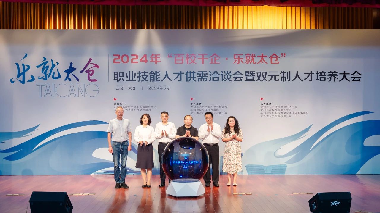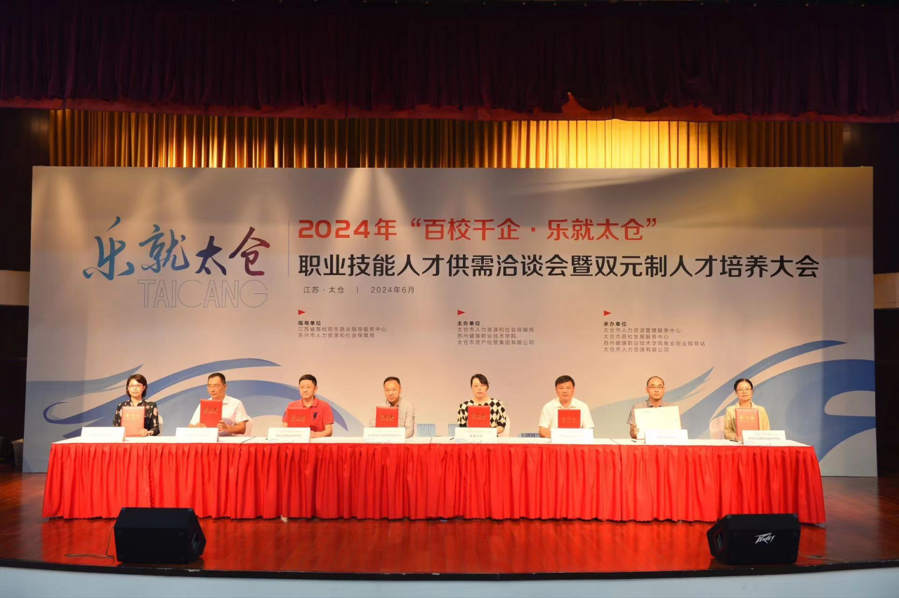 2024年“百校千企·乐就太仓”职业技能人才供需洽谈会暨双元制人才培养大会正式启幕。