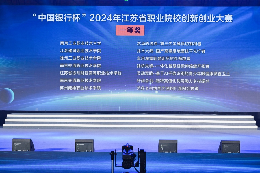 江苏省职业院校创新创业大赛是全省职业院校参赛面最广、覆盖学校最全、参赛团队最多、参赛水平最高、影响最大的创新创业盛会,共有200余所职业院校、9.8万个项目、36万余人次报名参赛,378个项目晋级省级决赛。此次大赛也是规模最大、形式最新、最为生动的思政大课堂。学校将继续以大赛为重要抓手,加强创新人才培养,培育发展新质生产力新动能,为学校高质量发展添砖加瓦,为中国式现代化作出贡献。(图文/校企合作处(就业创业指导中心) 审核/高飞)