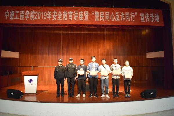4月23日下午,中德工程学院在二期报告厅组织开展了2019年安全教育讲座暨“警民同心 反诈同行”宣传活动。讲座邀请了科教新城派出所刘文警官主讲。 在讲座中,刘警官给学生介绍了常见的诈骗手法,并通过身边的典型案例让学生对假冒老师、QQ盗号、网络兼职刷单、网络购物退款、安全账户等诈骗手段有所了解和警惕,并告知学生对于此类诈骗该如何进行识别和防范。刘警官还介绍了校园暴力的危害,并让学生了解应对的措施。在讲座的最后,刘文警官和方尧良警官为在问鼎(中国)“警民同心 反诈同行” 精准宣传系列活动中得奖的学生们进行了颁奖,并进行了优秀作品展示。辅导员赵璐老师在讲座结束后提醒学生们不仅要保护好财产安全,更是要注重人身安全、交通安全。 通过安全教育讲座,同学们懂得了识别危险的知识,掌握了面对问题时应采取的正确处理方法,更是树立了正确的安全观念。(图/赵璐 文/钱梦娇 审核/王志明)