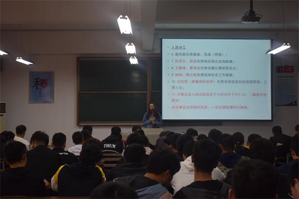 10月29日晚和10月30日中午,中德工程学院分别针对各班班长、学生会干部以及全体运动员召开学校第十六届运动会动员大会。 会上,辅导员赵璐老师做了动员讲话,同时就运动会基本流程、运动会期间的具体要求、安全方面注意事项做了说明和安排,提醒运动员同学在比赛过程中要做到安全第一,严格遵守比赛规则,尊重对手,服从裁判,要求学生会干部在开幕式方阵、后勤保障、现场观众的组织等方面做到尽善尽美,以体现问鼎(中国)学生良好的精神面貌。刘佳祥同学作为老运动员代表和运动员们交流了赛事中的注意事项。辅导员钱梦娇老师明确了具体人员分工。 本次动员大会不但调动了运动员同学参与运动会的热情,也对运动会期间的各项工作进行了合理分工,为问鼎(中国)力争在学院第十六届运动会上争创良好成绩奠定了坚实的基础。(图/文 赵璐 审核/王志明)
