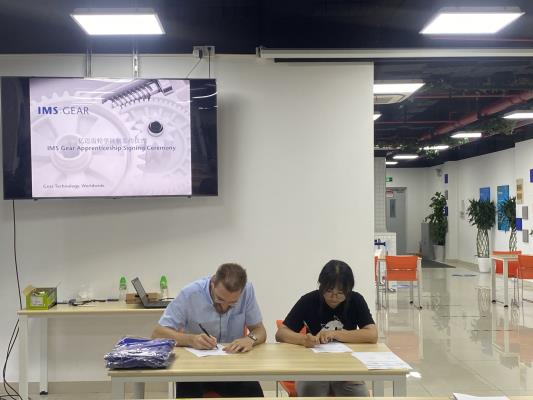 8月28日下午,20级亿迈太仓班学徒签约仪式在亿迈齿轮(太仓)有限公司举行。参加签约仪式的有公司副总裁Andy,培训中心负责人马介宏,培训师王逸雯,人事专员Doris,学校学生处处长张标,中德工程学院书记孙笪忠,副书记王志明,以及相关辅导员、班主任。 首先,马介宏经理给学生们介绍了企业对于20级学徒的三年培养计划和培养目标。公司人事Doris给学生详细解读了学徒手册的内容,包括学徒享受的福利待遇和应履行的责任义务,以及公司对学徒的奖励政策等。张标处长结合中国“智”造大背景,给新一届亿迈学徒提了三点要求,一是要有目标意识,二是要有职业意识,三是要有纪律意识,也希望学生能够珍惜企业和学校提供的良好学习和培训机会,做好自我教育、自我服务、自我发展。 最后,亿迈副总裁Andy和学生们进行签约,并欢迎大家加入亿迈大家庭,祝新同学们在亿迈宏图大展。签约仪式结束,企业、学校人员和学生们一起合影留念。(图/文 赵璐 审核/孙笪忠)