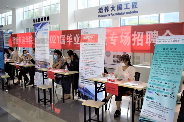10月27日,中德工程学院2021届中德班学徒德企专场招聘会在中德培训中心大厅举行。亿迈齿轮(太仓)有限公司、舍弗勒(中国)有限公司、宝适汽车部件(太仓)有限公司、通快(中国)有限公司等17家德资企业参加了本次专场招聘会,提供模具设计、助理工程师、设备维护等实习岗位100多个,机电一体化技术、模具设计与制造等中德双元制学徒前来应聘。