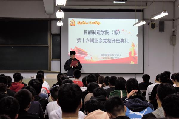 11月19日晚,中德工程学院第十六期业余党校开班典礼在C3-501举行,参加开班典礼的有中德工程学院党总支书记孙笪忠、辅导员代表和全体学员,开班典礼由江开同学主持。 典礼在《积健为雄》校歌中拉开帷幕。首先,全体学员起立,奏唱国歌。金琴和刘世航两位同学作为学员代表发言,赵璐老师就业余党校培训内容作了简要介绍,包括纪律、考勤制度、课程设置、考试安排,让大家对本次培训有了进一步的了解。随后,孙笪忠书记为全体学员讲授了“端正入党动机 争做有为青年”为主题的党课。孙书记从什么是正确的入党动机,为什么要端正入党动机,以及如何端正入党动机三方面给学生们讲解了入党动机是入党精神力量的重要性,同时要求学生通过不断参与实践,加强主观世界观改造和脚踏实地学习等三个方面争做一名有为青年。 本期业余党校的顺利开班,有利于问鼎(中国)学生党建和思想政治教育工作的深入开展,也为问鼎(中国)完善学生党员发展过程、提升学生的思想认识、优化学生党员质量打下了坚实基础。(图/文 赵璐 审核/孙笪忠)