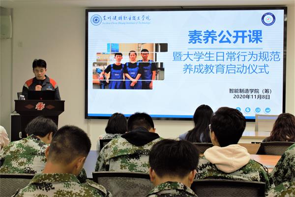 11月8日晚,智能制造学院在二期A1-402会议室开展素养公开课暨大学生行为规范养成教育启动仪式。辅导员老师,全体学生会干部、入党积极分子、19级和20级班长参与了启动仪式。院党总支副书记王志明为全体学生授课。
