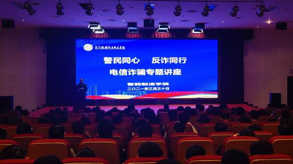 3月30日晚,智能制造学院联合保卫处组织“警民同心 反诈同行”专题讲座,本次讲座邀请了科教新城派出所王韧所长给19级和20级的学生普及电信诈骗等相关知识,讲座由保卫处曹跃兴处长主持。 在开始讲座之前,同学们首先观看了电影《巨额来电》中集团化电信诈骗的桥段。随后,王所长和学生们强调了现实中的电信诈骗要比电影中更加可怕,王所长结合科教新城近年来接手处理的电信诈骗案例,给同学们一一列举了惯用的电信诈骗手法,包括网络刷单、QQ盗号、网上购物、冒充家长等,同时王所长也希望所有同学通过掌握电信诈骗的基本知识来增强防范意识和自我保护能力。 此外,王所长从法律角度和同学们交流了打架斗殴、故意损毁财务、盗窃、侮辱诽谤他人等行为会产生的法律后果,帮助学生们进一步提升了法律意识。 最后,曹处长再次和学生强调在生活中要增强自身防范意识,及时把今天讲座的内容带回班级、带入宿舍,让更多的同学提高警觉意识,提升法律素养,做一名知法、守法的青年学生。(图/文 赵璐 审核/孙笪忠)