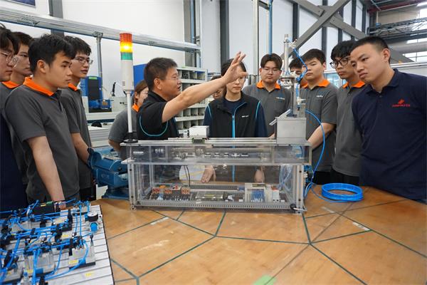 马经理对智能制造学院学生会同学们的到来表示欢迎,并结合企业的生产和管理向同学们讲解了以“开放、尊重、集体、信赖、热情、勇气”为引领的企业价值观,让同学们感受到了企业文化对员工成长和发展的影响。随后,学生们走出培训教室,来到培训中心的实训场室,参观了企业的现场5S管理。马经理说:“5S是一种素养,要求的是持之以恒的坚持和完善,也是工匠精神的一种展现。”为了让同学们更好的理解工匠精神,马经理搬出了亿迈班学生的AHK作品和优秀毕业设计作品,用实物给大家立体呈现了匠人对“标准、外观、内涵”的完美追求。最后,马经理和同学们分享了自身的成长经历和故事,告诉同学们走入社会一定要耐住性子,要不断走出自身的舒适圈,才能有一个更好的职业发展机遇。