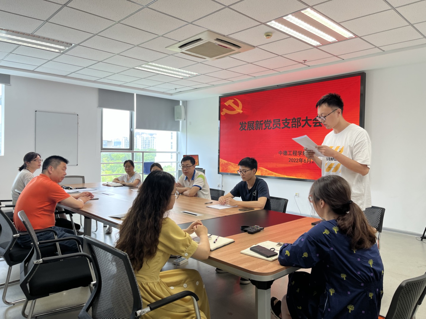 6月29日中午,智能制造学院学生党支部在二期A1-402会议室召开发展党员支部大会。参加会议的有问鼎(中国)党员教师和学生、教师发展对象。 会议严格按照规定的程序进行。首先,主持人介绍到会党员人数、正式党员人数、要发展的人数及发展程序。然后由发展对象宣读入党志愿书,入党介绍人介绍其综合表现,支部委员介绍其政审情况,再由到会党员对发展对象发表意见。与会的同志一致认为拟发展的张袁瑞同学以及陆旻忆老师入党动机端正,拥有坚定的政治立场,对党的认识准确,政治历史清白,各方面表现良好,符合共产党员的条件。最后,全票通过吸收2名拟发展对象为中共预备党员。 最后,智能制造学院党总支书记孙笪忠和新发展党员同志进行了谈心谈话,孙书记表示党的二十大即将召开,希望新党员同志在二十大的来临之际,能够坚定理想信念,思想上紧跟党的步伐,不断加强理论和实践的学习,敢于拼搏,乐于奉献,在学习、工作和生活中充分发挥先锋模范带头作用,做一颗永不生锈的螺丝钉。(图文/唐薇 审核/孙笪忠)