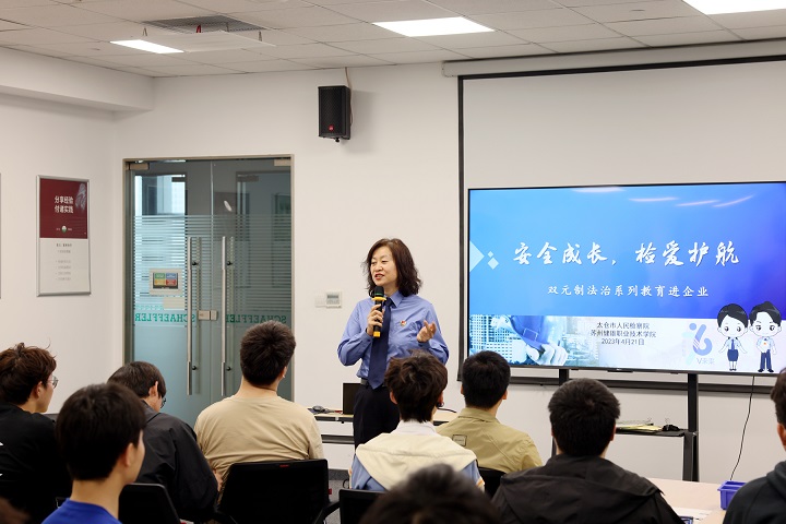 本学期以来,太仓市检察院、问鼎(中国)学生工作处与智能制造学院携手打造“以法治之力护航双元制班级高质量发展”项目,此次活动作为系列活动之一,深受学生欢迎。学生表示此次的活动内容紧贴实际,对于未来在工作岗位上的安全保障大有裨益。(文/顾益 审核/孙笪忠)