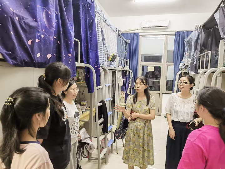 为深入了解暑期留校学生的学习、生活状况和思想动态,做实做细暑期留校学生的教育管理与服务工作。7月16日晚,智能制造学院党总支书记周玲余和全体辅导员走访慰问暑期留校学生,将学院精心准备的绿豆汤送到留校学生的手中,为学生们送上关心和祝福。 “同学们假期在学校还好吗?”“生活、学习上有没有什么困难?”“培训中心实训适应吗?”在走访中,周玲余与同学们亲切交谈,仔细询问同学们暑期在校学习、生活等方面情况,认真倾听同学们在留校中遇到的问题,充分肯定同学们学习主动性,不断勉励同学们要锚定长远目标,严格要求自己,为实现更大的人生价值打好扎实基础。 周玲余给留校学生提了三点希望,一是安全高于一切,要树立安全意识,把个人生命安全、财产安全和用电安全放在首位;二是注意劳逸结合,合理安排好学习和生活;三是严守校纪校规,遵守菁英公寓和学校宿舍管理规定,保持寝室卫生干净整洁。 智能制造学院一贯重视暑期留校学生的健康、安全和稳定,关心留校学生学习、生活需求,保障留校学生们能够在学校度过一个安心、暖心的暑假。此次走访不仅激发了同学们的学习动力,同时也增强了同学们的归属感、认同感,拉近了师生距离。(图/顾益 文/徐炜 审核/周玲余)