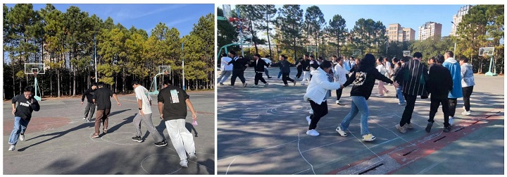 活动以趣味性为主,共包含“跳房子”“不倒森林”“定点投篮”“我们是最棒的团”“时代列车”5个关卡,为同学们营造了一个轻松愉悦、健康向上的活动氛围。活动现场,同学们积极参与,快乐打卡。