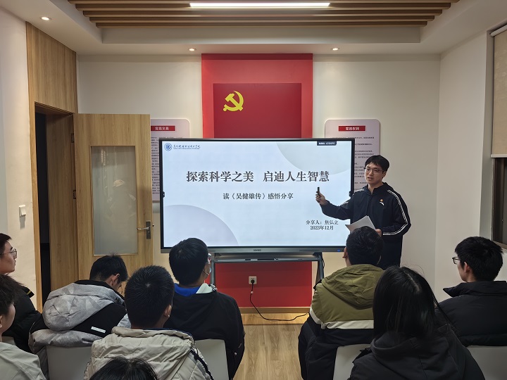 为大力弘扬科学家精神和工匠精神,进一步发挥学生党员在广大青年学生中的模范带头作用,掀起学习践行吴健雄精神的热潮。12月14日,智能制造学院组织学生党员和入党积极分子进入学生社区开展“传承健雄精神 争当有为青年”读书分享会活动,30位业余党校学员参加。 中共预备党员黄梦翔和入党积极分子焦弘立结合自身对吴健雄精神的理解和个人学习竞赛经历,阐述了“吴健雄精神是什么”“为什么要学习吴健雄精神”“如何去践行吴健雄精神”,鼓励学员们不要停下学习的脚步,把吴健雄精神融入学习和生活,通过志愿活动和技能竞赛不断去丰富自己,提升自己。 学院将常态化把读书分享会活动与微党(团)课活动相结合,让更多的同学能够结合自身鲜活的事例,用青年生动的语言,融入真实的情感,讲好学习成长的故事。学院也将持续依托“一站式”学生社区,深入开展主题教育相关活动,将学生社区建设成为发挥学生党员示范、学生先锋模范作用的重要阵地,助推书香社区建设。(图文/陆旻忆 审核/周玲余)