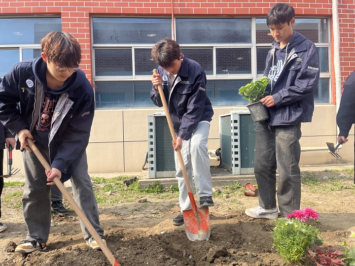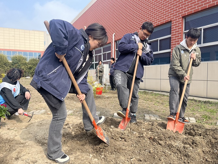 3月12日下午,智能制造学院学生党支部老师、学生党员和入党积极分子,共计40余名同学在“口袋公园”开展一场生动的劳动教育体验课。活动伊始,智能制造学院学生党支部书记陆旻忆向同学们讲述“植树节”的由来,号召学生党员要发挥先锋模范作用,树立劳动意识和生态文明观念,耐心讲解植树步骤和注意事项及植树的意义。随后党员老师与学生一起刨坑、植树、施肥、浇水,并现场对花卉种植进行DIY设计,同学们一锄一锄地松土,一锹一锹地挖坑,认真细致地培土、压土,浇水,看着被种好的“希望之树”,学生真正理解了劳动的意义。