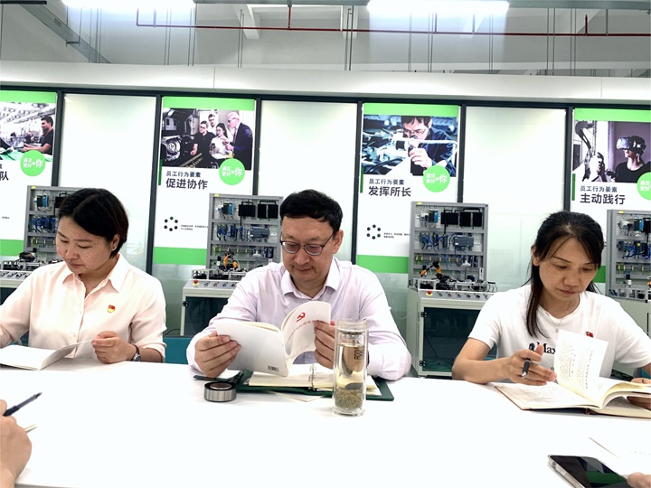 为推动党纪学习教育走深走实,深入学习《中国共产党纪律处分条例》,加强党员的党性修养和纪律观念。6月11日上午,智能制造学院学生党支部书记陆旻忆在东校区D2工业4.0教学工厂带领支部党员教师深入学习解读《中国共产党纪律处分条例》,学院党委书记苏霄飞到会学习,学院党总支书记周玲余、副书记吴成炎及全体支部党员教师参加。