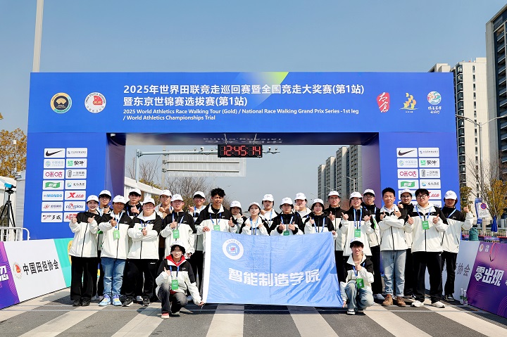 2025年3月1日至2日,世界田联竞走巡回赛暨全国竞走大奖赛(第1站)暨东京世锦赛选拔赛(第1站)在江苏省太仓市成功举办。智能制造学院“智小匠”志愿服务队积极响应号召,组织25名学生志愿者全程参与赛事服务,以专业素养和奉献精神保障赛事顺利运行,展现了智能制造学院学子昂扬向上的精神风貌。