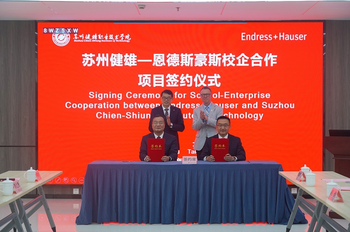 在热烈的氛围中,学院党委副书记、院长林长永与恩德斯豪斯(苏州)自动化仪表有限公司总经理沈涛签署了校企合作协议。