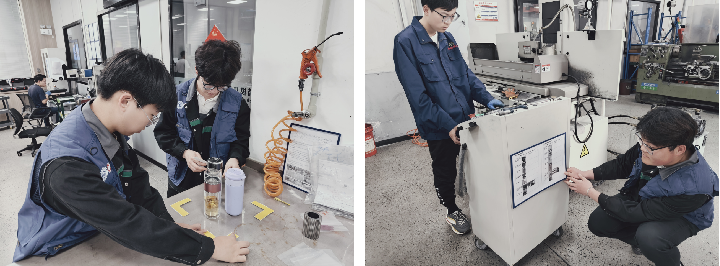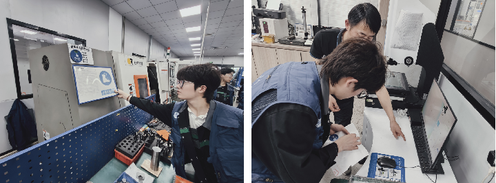 实践育人强技能 长效机制促发展 此次活动以党建共建为纽带,通过“现场课堂”与“实践考场”的联动模式,推动双元制学徒将5S管理理论转化为车间实操技能,并在与企业员工协同作业中深化对生产流程标准化、精细化的理解。依托校企定期回访机制,双方将持续跟踪车间管理优化成效,并探索技术攻关、人才共育等多元合作路径,实现产业需求与专业培养的深度衔接。