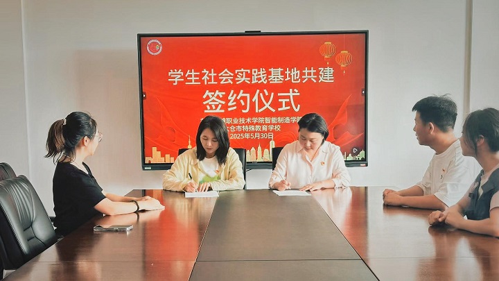 智造温度暖童心,校地携手育新篇。5月30日,智能制造学院党总支副书记吴成炎一行前往太仓市特殊教育学校,共同见证双方学生社会实践基地共建签约仪式,太仓市特殊教育学校王燕校长出席签约。仪式后,学院“智小匠”志愿者服务队迅速投入行动,协助该校成功举办“粽香传情 童心飞扬”亲子运动会。 共建基地启新篇,实践育人拓新路 签约仪式上,双方就合作目标与框架达成共识。吴成炎强调本次合作对学院实践育人体系的重要意义,表示将依托专业特色,为特教学子精心设计并输送科技启蒙、技能体验等优质实践项目,助力潜能开发与社会融合。王燕对此深表欢迎与期待,她相信基地的建立将为特教学生打开一扇接触前沿科技、体验多元成长的宝贵窗口,为未来融入社会铺设更坚实的阶梯。