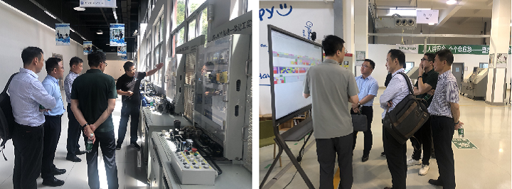 随后,高博航空一行参观学院实训工厂。双方围绕技能人才培养的核心要素展开交流,周晓刚强调双元制培训在提升学生专业技能、职业素养和良好工作习惯方面的重要性。高博航空代表对学院仿真实车间的操作台和“实训为本,素养并重”的培养模式表示赞赏。