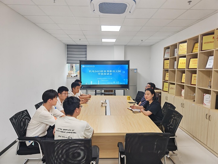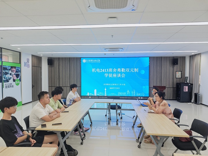 为深化双元育人,关注舍弗勒双元项目班学徒暑假留校学习和生活情况,7月9日,智能制造学院组织了一场温馨且务实的座谈会。智能制造学院党总支副书记吴成炎、教工党支部书记潘云忠、机电一体化专业负责人车娟,舍弗勒专职辅导员刘惠杰参与座谈,教师两人一组,学生五人一组,分别在两个会议室畅所欲言,教师认真倾听并积极回应。