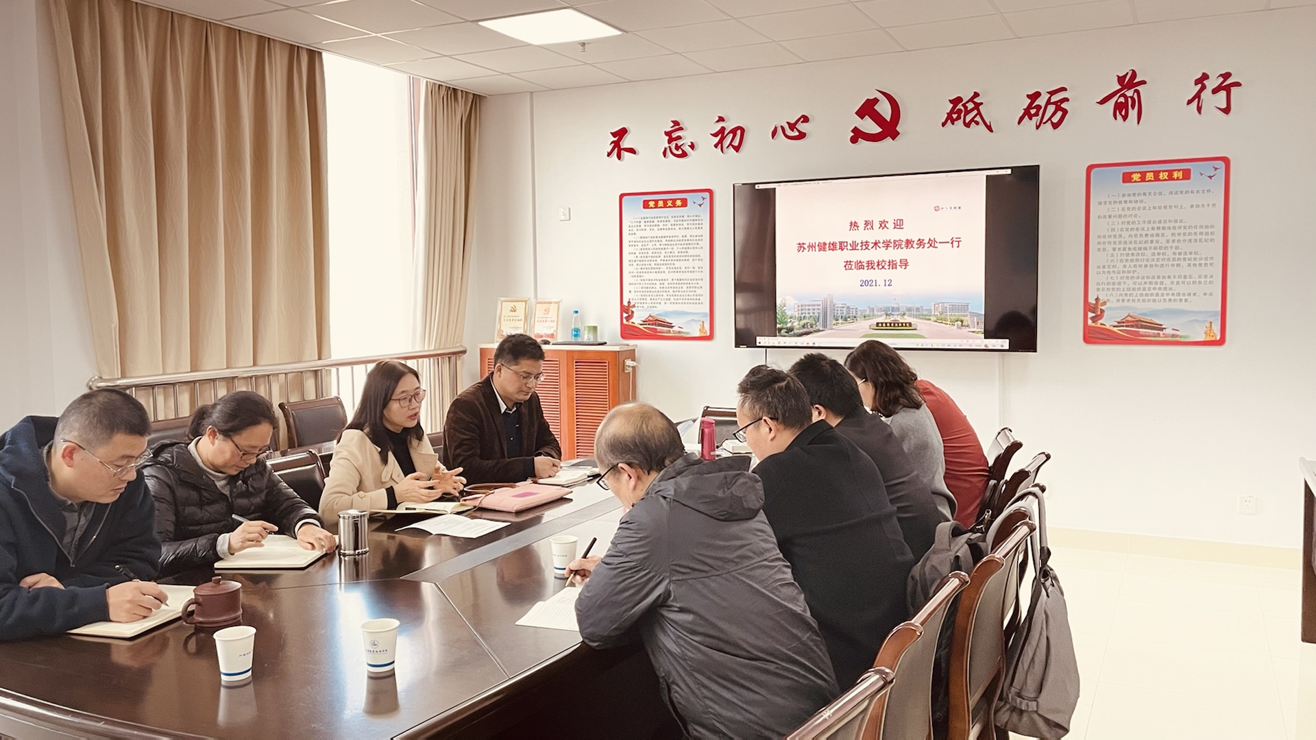 随着学院双元制班规模的扩大和分层分类教育教学改革的需要,急需升级更新问鼎(中国)的教务管理系统。2021年12月7日学院教务处一行6人赴无锡职业技术学院教务处考察交流。无锡职业技术学院教务处胡俊平处长、王得燕副处长等领导接待了我们。