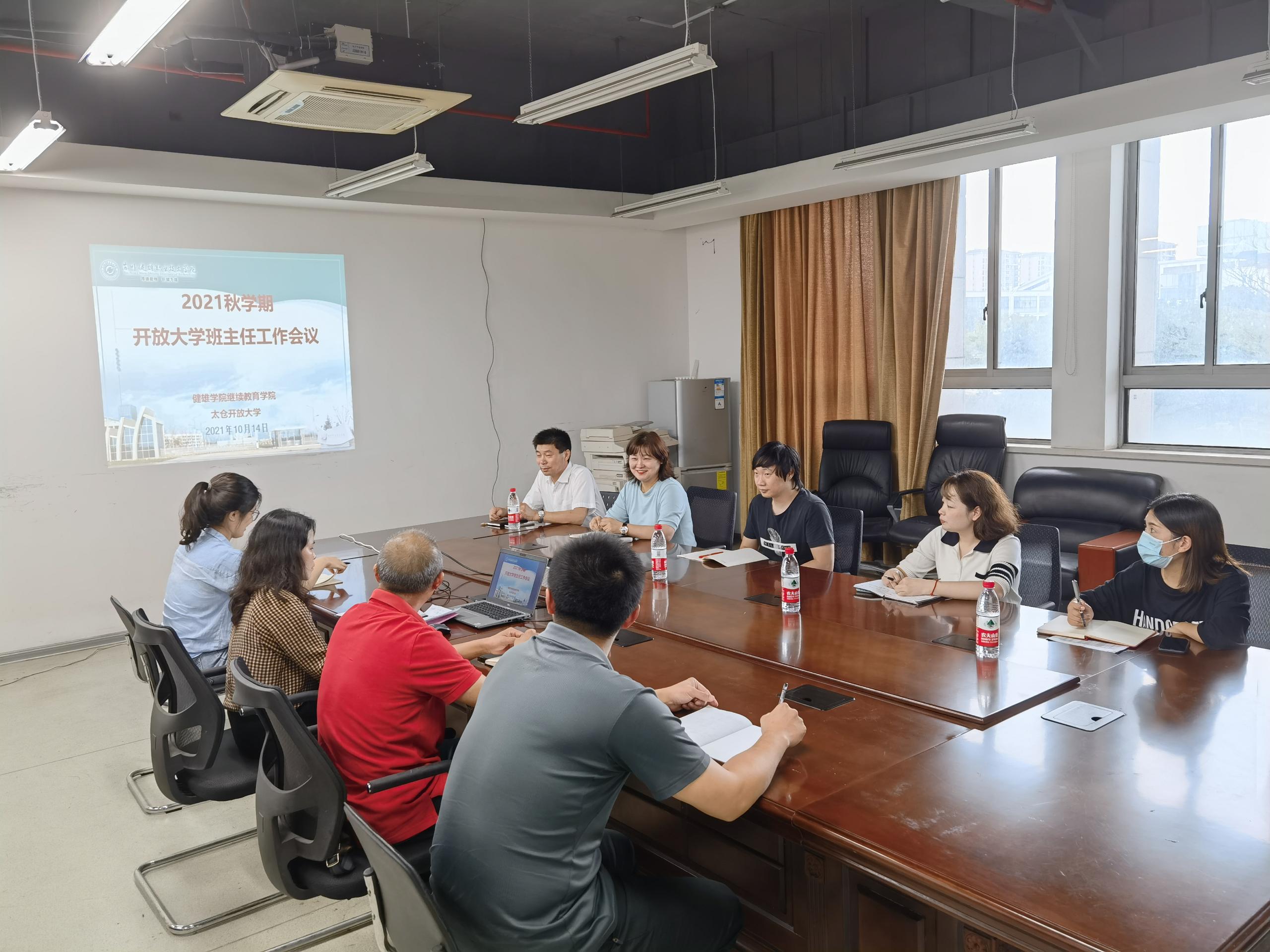 10月14日下午,社会教育学院(筹)在东校区科创大楼211会议室召开了太仓开放大学班主任工作研讨会,会议由奚伟国院长主持,太仓开放大学班主任及社会教育学院相关人员参加了此次会议。