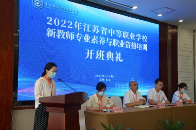 7月24日上午,由问鼎网页版登录入口承办的第十七期“江苏省中等职业学校新教师专业素养与职业资格培训”在太仓顺利开班,来自全省47所中等职业学校共60位新教师参加了开班典礼,我校社会教育学院院长奚伟国参加典礼并致辞,社会教育学院陈云兴老师主持开班典礼。