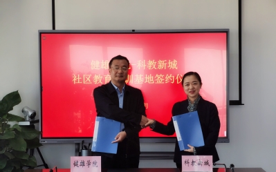 在签约仪式上,林长永院长对科教新城管委会对于该培训基地的建立给予的大力支持表示衷心的感谢;他希望以“健雄学院—科教新城社区教育培训基地”为平台载体,双方通力合作,开展一系列内容丰富、形式有效的社区教育活动,把社区教育工作做活做实。科教新城管委会朱琼主任表示,“健雄——科教新城”社区教育培训基地的建立,有利于共建双方发挥各自优势,特别是借助健雄学院雄厚的智力资源,提升和丰富区域内社区教育活动的水平和内容。