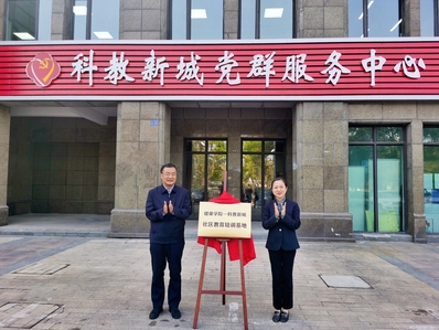 签约仪式结束后,林长永院长与朱琼主任共同为“健雄——科教新城”社区教育培训基地揭牌。