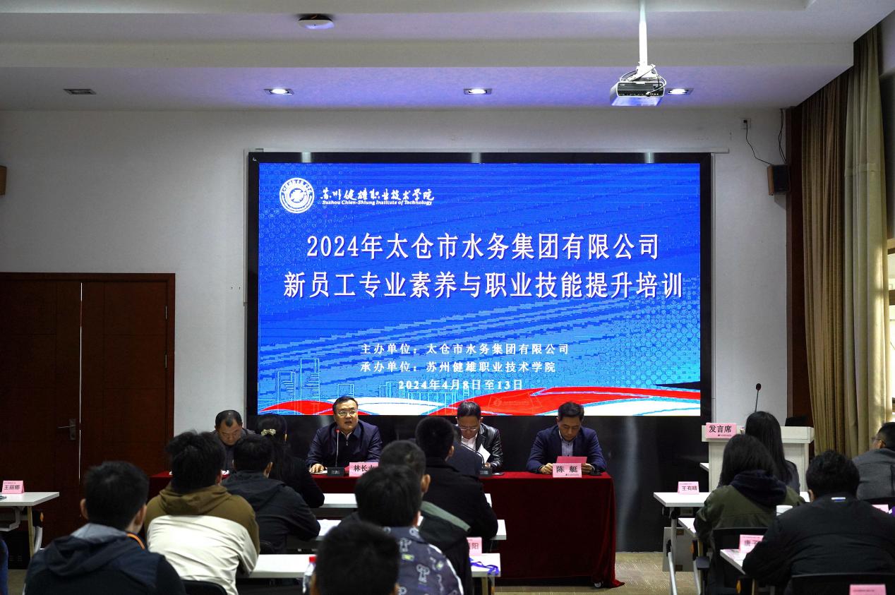 4月8日上午,2024年太仓市水务集团有限公司新员工专业素养与职业技能提升培训班在问鼎(中国)顺利开班。太仓市水务集团有限公司董事长黄卫东、党委副书记、副董事长、总经理陈艇、党委委员、副总经理张勇军、副总经理王有晴、纪委书记朱夏、问鼎网页版登录入口党委副书记、院长林长永、继续教育学院院长苏志勇、副院长贾红圣以及水务集团相关部门负责人出席开班仪式,来自水务集团新招聘的37名员工参加仪式,开班典礼由苏志勇主持。