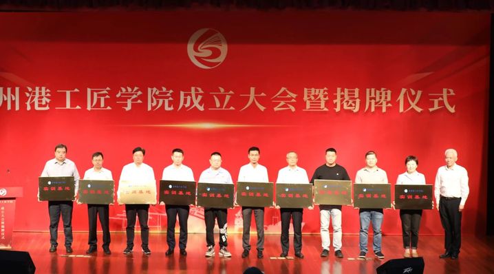 成立大会现场,领导嘉宾为苏州港工匠学院名誉院长、名誉董事、特聘讲师颁发聘书,为10家苏州港工匠学院首批实训基地授牌。揭牌仪式后,苏州港工匠学院劳模工匠特聘讲师褚锋为师生代表作《党领导下新时代产业工人的成长与蜕变》专题讲座。