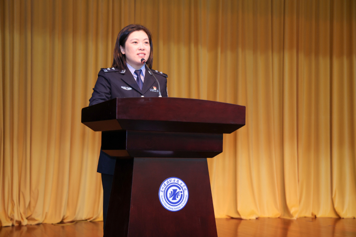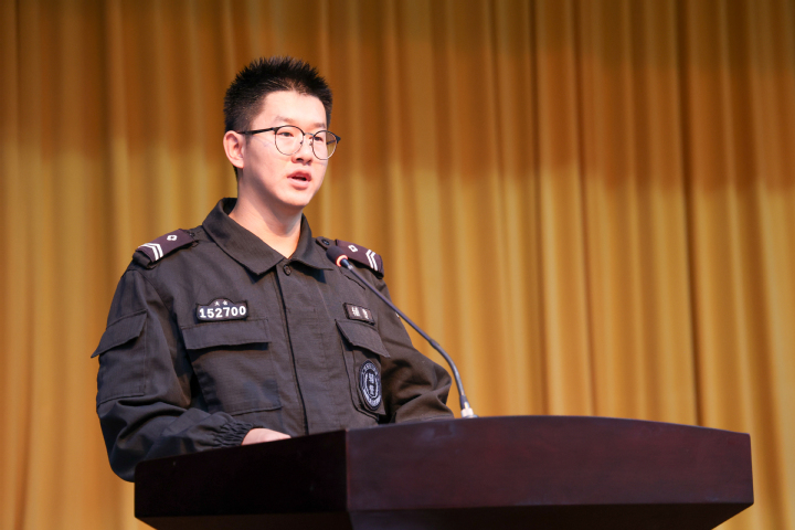新生代表来自太仓市公安局警务中心的范佳敏同学发言,他表示:在未来的学习生活中,一定会认真学习专业知识,努力提升自身素质,将学习成果转化为工作动力,以饱满的热情和昂扬的斗志投入到辅警工作中去。
