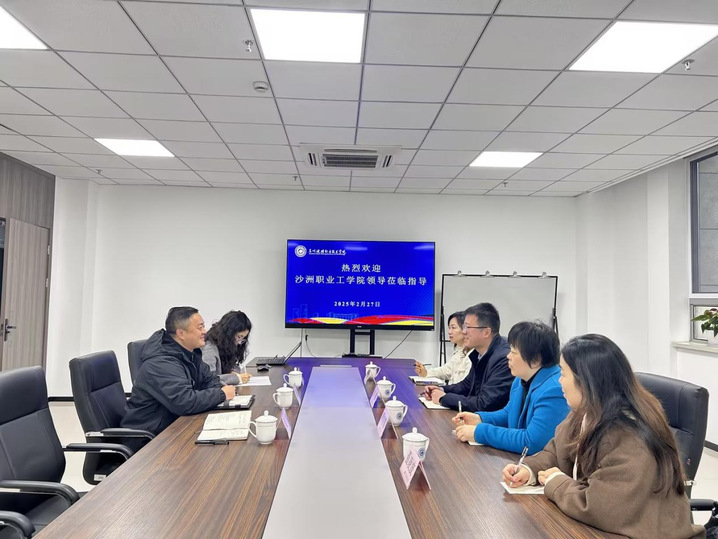 2月27日上午,沙洲职业工学院继续教育处副处长刘勇等一行到我校继续教育学院开展调研交流,我校继续教育学院副院长贾红圣及开放教育负责人陈平、社会培训负责人吴燕一起参加调研交流。