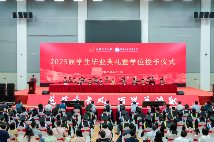 毕业典礼隆重而热烈,现场有热情洋溢的讲话、有诚挚殷切的祝福和鼓励,也有超燃的演唱、有庄重的拨穗仪式……我校三位毕业生代表和全省办学系统各市县校的毕业生代表一起上台,接受了学位授予和拨穗。这场典礼不仅是对学生们学业成果的肯定,更是对他们未来人生的美好期许。