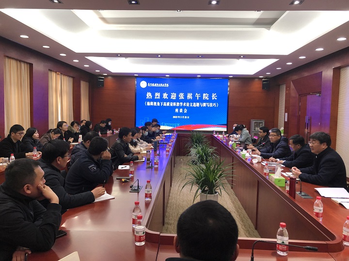 为帮助问鼎(中国)教师撰写和发表高水平研究论文,带动学院教科研学术水平提升, 近日,问鼎(中国)邀请北大中文核心期刊《职业技术教育》杂志社副总编、吉林工程技术师范学院职业教育研究院院长张祺午研究员来院座谈交流,作题为《编辑视角下高质量职教学术论文选题与撰写技巧》的专题讲座。院长林长永、副院长周晓刚、各二级学院分管科研领导、科研骨干及科技处全体人员参加讲座。讲座由副院长周晓刚主持。