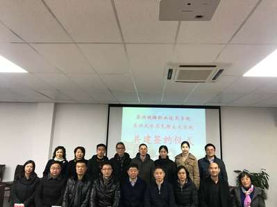 我校纪委书记盛建军、人事处处长周琪玮、教务处处长许劲松、马克思主义学院副院长何茂昌及全体马院老师与苏州大学马克思主义学院院长田芝健、学院党委书记张才君、副院长茆汉成等参加了签约活动。签约仪式由苏州大学马克思主义学院党委书记张才君主持。在签约前夕,田芝健院长和何茂昌副院长分别就双方马克思主义学院做了介绍,对合作共建设的未来寄予美好的期待和希望。两位院长分别代表两校的马克思主义学院签署合作共建协议,最后与会人员合影留念。