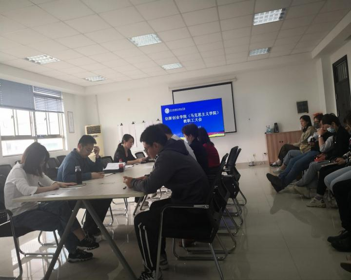 5月10日下午,马克思主义学院召开以“‘强使命–勇担当’,争做奋斗者”为主题的会议,本次会议主要有两个阶段,一是全体教职工政治学习,主要是开展师德师风专题教育;二是召开教职工大会,开展第五届工代会、教代会代表选举工作。会议由马克思主义学院院长周丽雅主持,全体教职工参加。