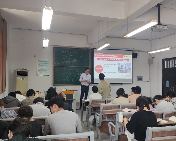 丁委员以“坚持以人民为中心”为授课主题,从“谁是真正的英雄”、“坚定人民立场”角度进行了授课。丁委员通过生动的语言、丰富的案例以及详细的理论讲解,向同学们阐明了人民是历史的创造者,江山就是人民、人民就是江山,党依靠人民创造历史伟业以及人民立场是中国共产党的根本政治立场等问题。整堂课课堂氛围活跃、互动频繁、反响热烈。