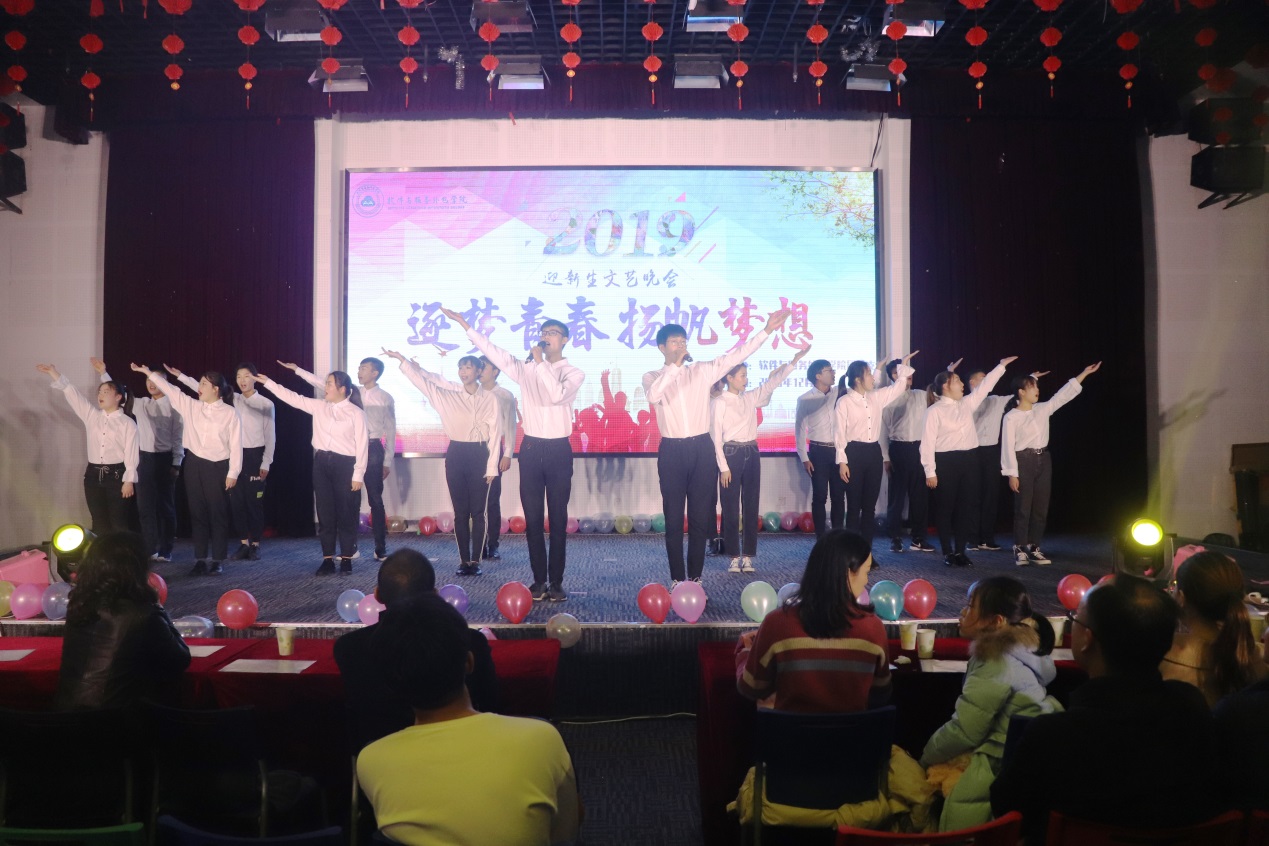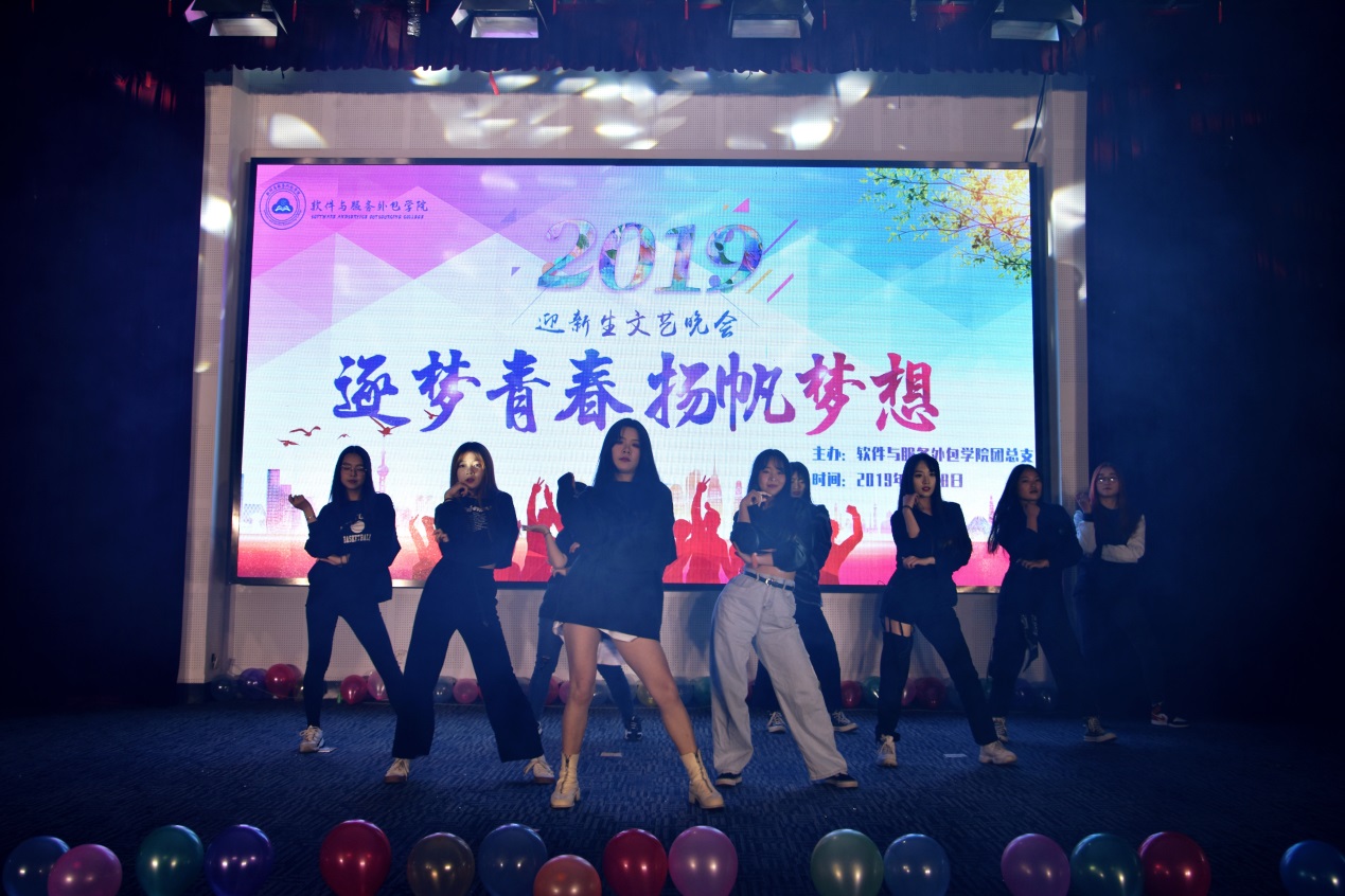 12月8日晚,软件与服务外包学院在图书馆多功能厅举行了2019年“逐梦青春·扬帆梦想”迎新生文艺晚会。校学生处处长张标老师、副处长沈晓婷老师,问鼎(中国)党总支副书记周玲余老师、副院长高振清老师、班主任和辅导员老师们,与软件学子共同欣赏了这场视听盛宴。