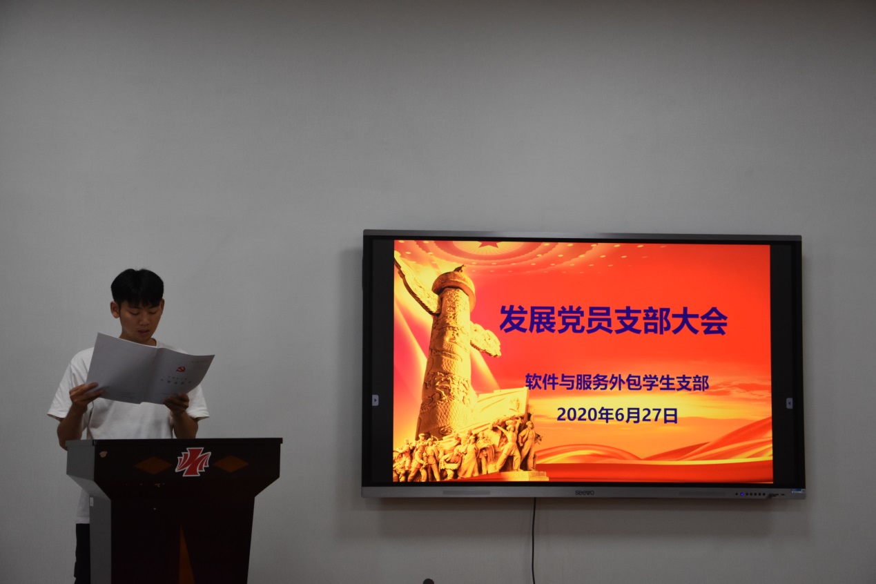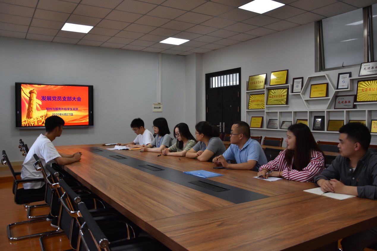 6月27日上午,软件与服务外包学院学生支部在D2-303会议室召开了2020年度发展党员支部大会。参加本次会议的有教师党员代表沈蕴梅、郑广成以及学生支部全体党员、拟发展党员。
