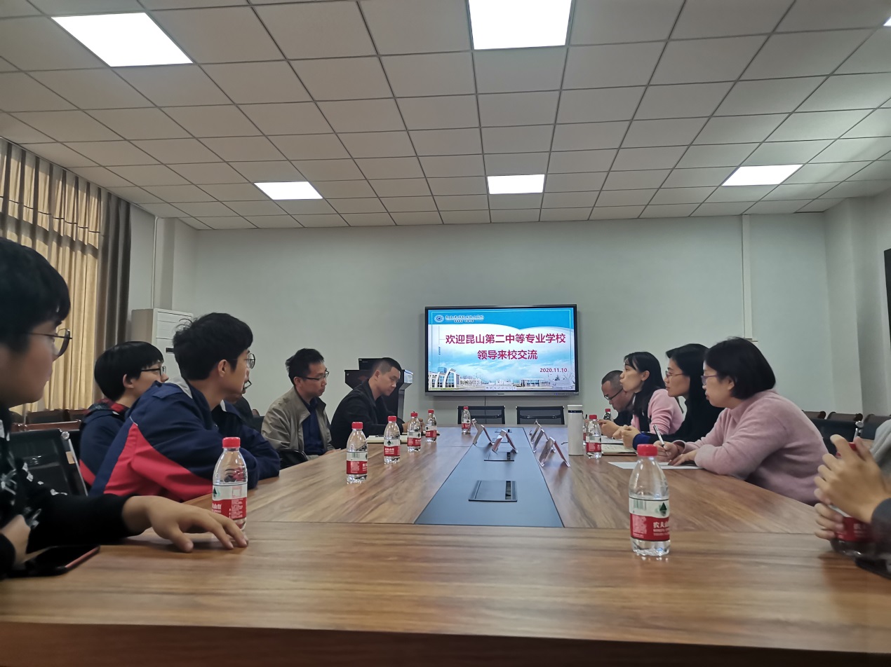 11月10日下午,昆山第二中等专业学校副校长徐辰带领教学主任及专业教师来人工智能学院(筹),进行3+3中高职衔接项目交流活动。