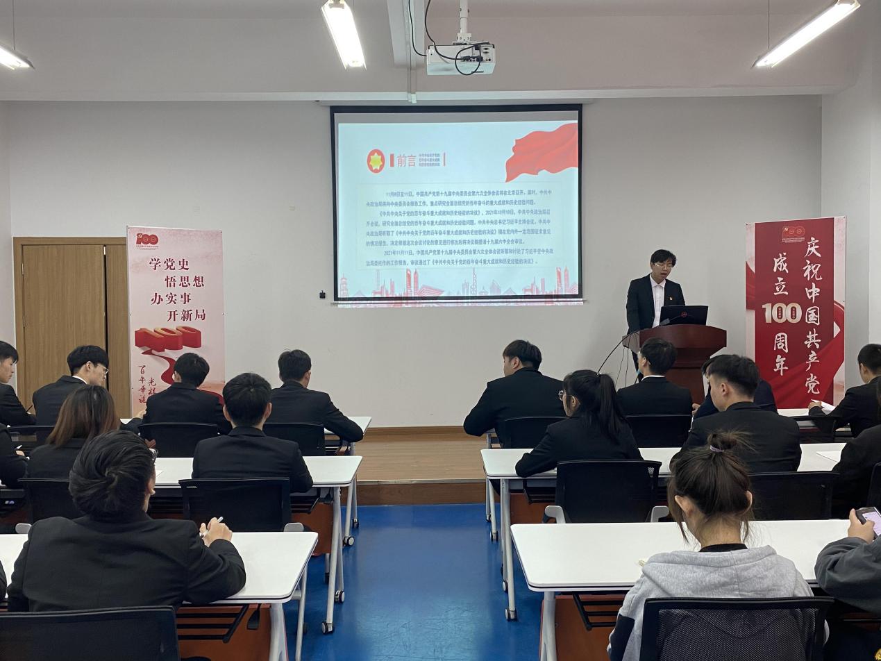 11月19日,人工智能学院团总支在D1-207教室开展了学习党的十九届六中全会精神会议,学院团学干部以及入党积极分子到场参加。会议由中共预备党员杨磊主持。
