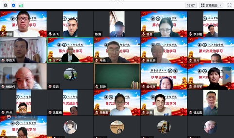5月11日下午, 人工智能学院召开春学期第六次政治学习。会议由人工智能学院筹建组副组长高飞主持,全体教职工参加了会议。