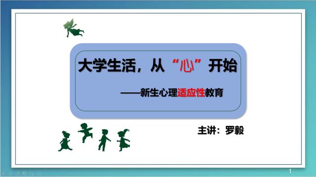 11月13日晚,辅导员罗毅、曹南岚老师主讲《大学生活,从“心”开始——新生心理适应性教育》,从大学生常见心理问题、我们为什么容易出现适应问题、可以做些什么等三个方面详细分析了新生可能遇到的心理困扰,列举了许多贴近生活的案例,深入浅出地讲解了新生容易出现心理问题的原因,鼓励同学们“改变可以改变的,接受不能改变的”,让自己的大学生活充实起来,适应新变化,迎接新自我。