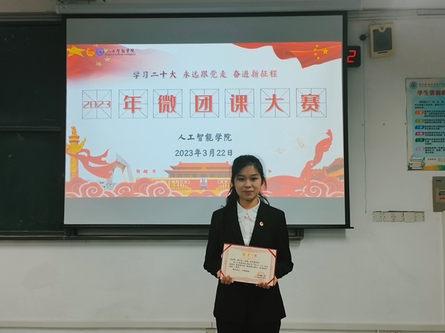3月22日下午,人工智能学院2023年“学习二十大 永远跟党走 奋进新征程”微团课大赛在C3-302举行。本次比赛由学生会组织部、信息部主办,团学干部、入党积极分子、入团积极分子等到场观摩,辅导员老师们担任评委。