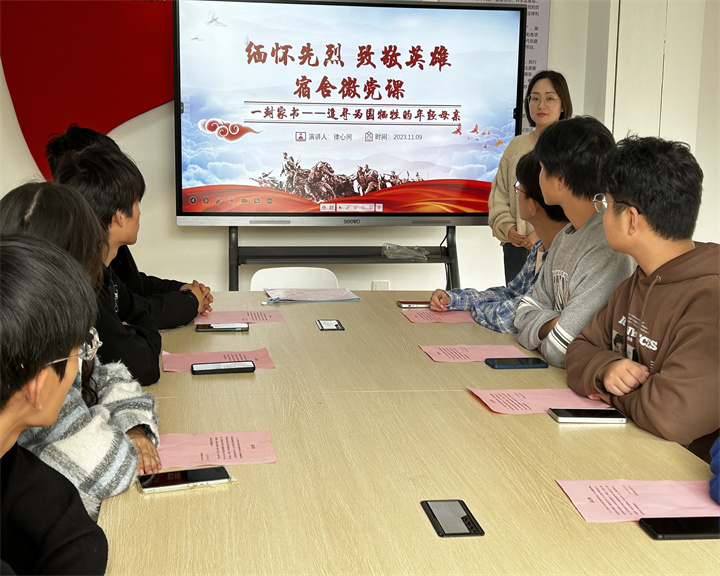 11月9日,人工智能学院辅导员律心同在“一站式”学生社区开展了一场主题为“缅怀先烈,致敬英雄”的宿舍微党课。天地英雄气,千秋尚凛然,通过向同学们介绍赵一曼的坎坷一生以及诵读赵一曼的《示儿书》,激励同学们不忘艰苦奋斗、砥砺前行。