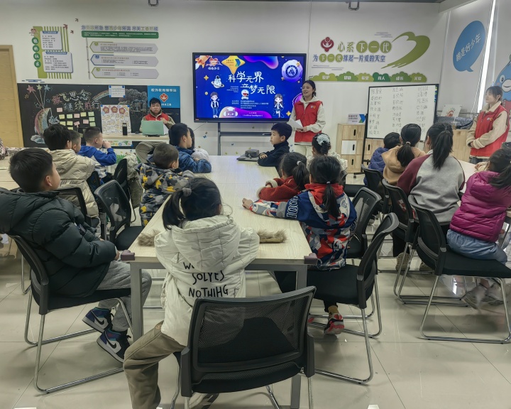 目前,“AI初识”模块课程已在科教新城常丰社区、鹊桥社区顺利开展,累计服务7-12岁年龄层青少年儿童共50余人。人工智能学院益启“AI”志愿服务队学生志愿者通过“理论+情景+游戏”三维教学法,生动讲解人工智能发展脉络、工作原理等,并结合语音助手、无人驾驶、deepseek等前沿案例,为孩子们解开AI技术的“神秘面纱”。