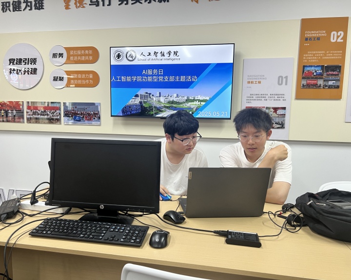 5月21日,人工智能学院学生社区党组织在一站式学生社区开展“AI在身边,‘智’启生活”主题系列活动。以AI服务日的形式,为全校同学排忧解难,全方位解决计算机日常使用难题。